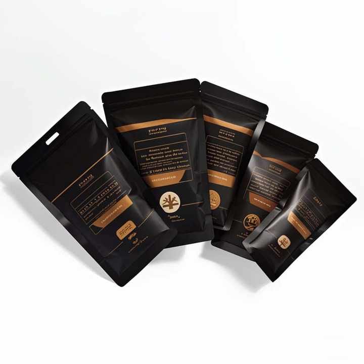 Our pouches are constructed using multi-layer black metallized film (Mylar) laminates, often incorporating an aluminum foil layer, that deliver exceptional barriers against moisture, oxygen, and light. The deep black color provides enhanced UV protection and a premium, sleek appearance, while the three-side heat seal ensures secure, tamper-evident closure with clean edges. The integrated resealable zip lock allows for convenient access and airtight reclosure, maintaining product freshness after each use. Our high-definition custom printing technology enables vibrant logos, branding, and product information to stand out against the black background, creating a striking shelf presence and premium unboxing experience.