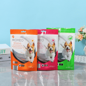 Self-supporting packaging bags have excellent airtightness and strength of composite materials, are not easy to break and leak, have the advantages of light weight, less material consumption, and convenient transportation. Stand-up pouches are used in pet snack packaging, which can be more conveniently displayed on the shelf.