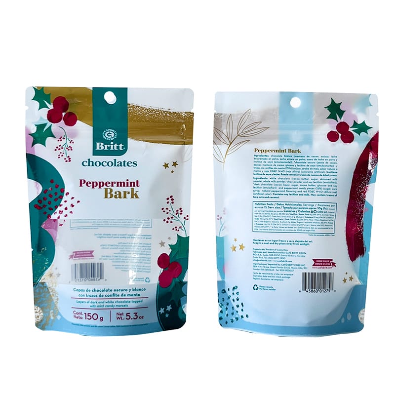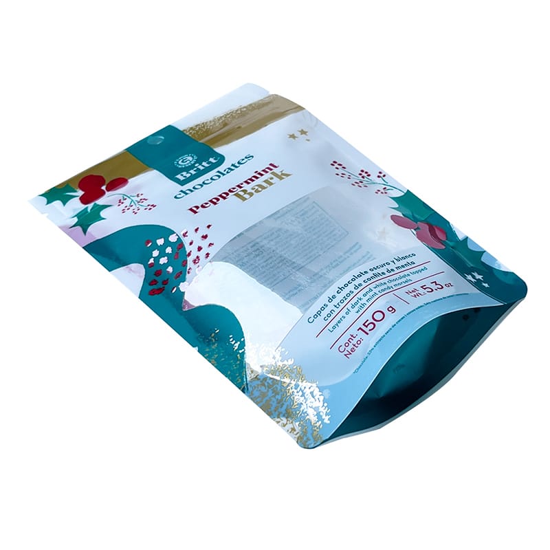 Elevate your chocolate and food products with our premium custom 150g recyclable stand up pouches, expertly designed for superior product protection and consumer appeal. These innovative packaging solutions feature a reliable resealable zip lock closure and a strategically placed display window that allows customers to visually inspect your products while maintaining complete packaging integrity. Crafted from environmentally conscious PE/PE mono-material construction, our pouches are fully recyclable, supporting your brand’s sustainability goals and appealing to eco-aware consumers.