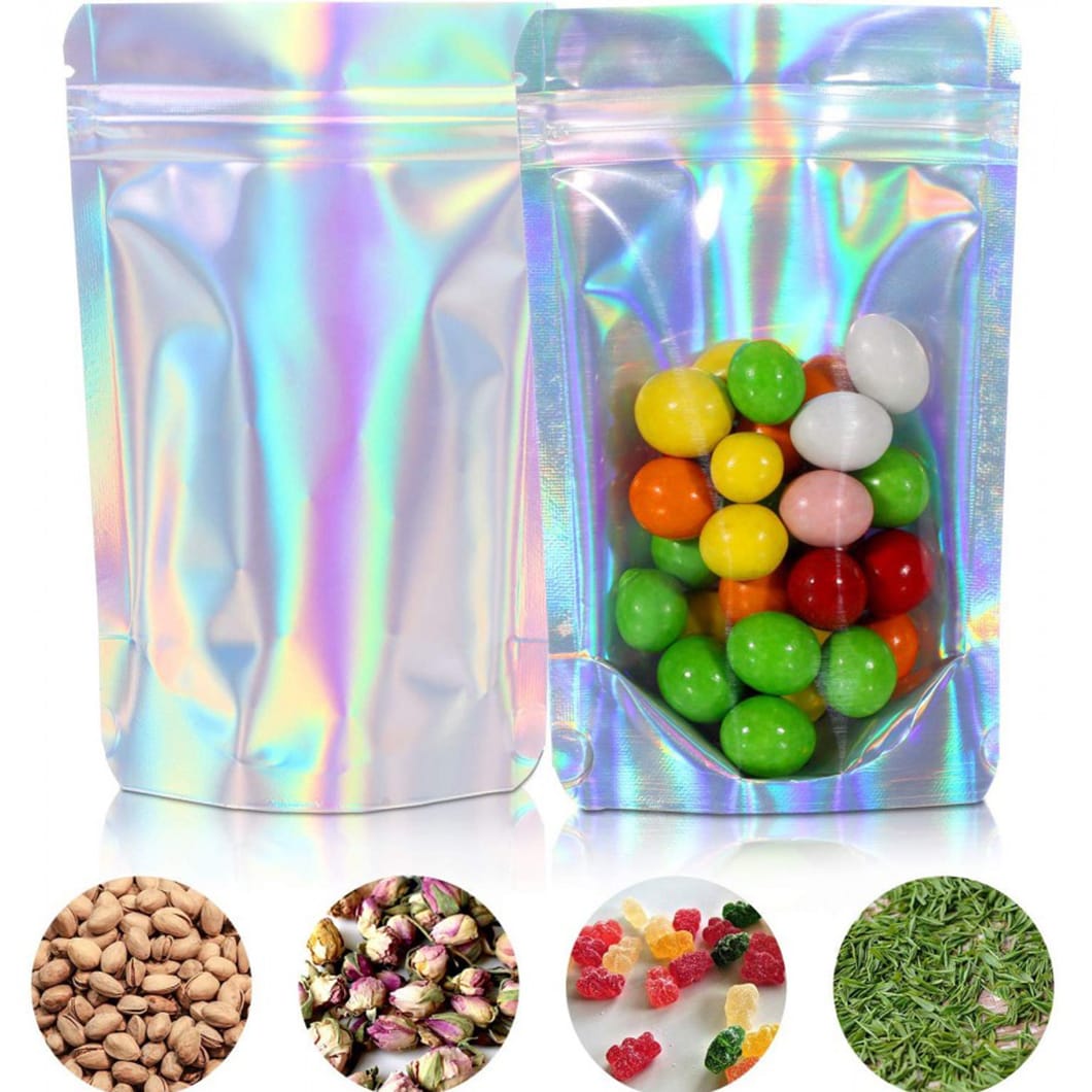 Elevate your snack packaging with our Premium Custom Printed Holographic Bags, featuring advanced PET+VMPET+PE composite material that provides exceptional barrier protection and stunning visual appeal. These innovative stand up pouches combine eye-catching holographic effects with practical functionality, including a one-side transparent window that allows customers to view product quality while maintaining complete package integrity. The reliable ziplock closure ensures freshness preservation for multiple uses, making it ideal for chocolates, coffee, crisps, nuts, and various snack products.